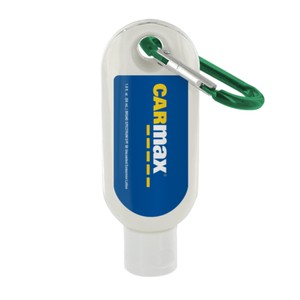 Here's a terrific marketing tool to "spread" on upcoming promotional events. Choose this 1.9 oz SPF 50 sunscreen lotion with carabiner clip as a handy giveaway. This product is Oxybenzone and PABA Free. It is USA Made in an FDA Approved facility. Our sunscreen meets the updated FDA standards for broad spectrum. The container size is 4 1/2" x 1 5/8". Add your company's logo and order yours today.