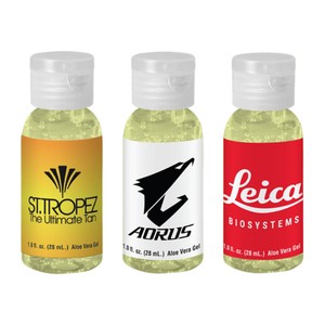 Upcoming promotional events will be "smooth" sailing when you feature this incredible marketing tool. Choose this 1 oz Aloe Vera Gel in round, clear bottle for a handy giveaway during tradeshows and conferences. Add this item to a gift bag. This product is USA Made in an FDA registered facility. The container size is 1 1/4" x 3 1/8". Add your company's logo to this item for an excellent opportunity to promote your business.
