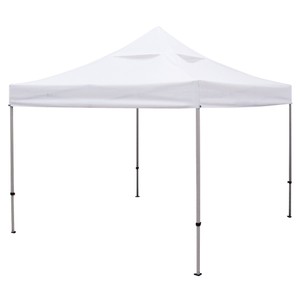 Designed for frequent use, this tent features a stronger, heavier steel frame than that of the Standard. Your artwork will be imprinted on 400 denier polyester. Vented canopy peak allows air to flow through to prevent wind damage. Pebble powder-coated steel frame. ABS glass-filled nylon joints. Crank-up canopy creates a taut, clean peak. Legs feature plastic levers for pinch-free height adjustments. Easy-Glide Tent Feet allow the tent frame to slide on dirt and grass, preventing the legs from catching.