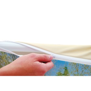 - Zippered graphic cover is taut and wrinkle-free when installed