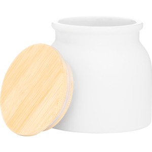 The Vida 16.9 oz ceramic container is a stylish storage solution for any kitchen or workspace. It features a matte white exterior and matching matte interior for a clean, modern look. The natural bamboo lid adds a warm, organic touch while helping to keep contents fresh. Ideal for storing dry goods like coffee, tea, sugar, or snacks.