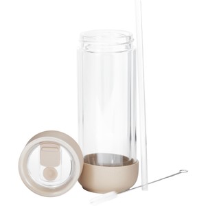 The Ember Cold Tumbler 16 oz is a sleek, double-wall insulated borosilicate glass tumbler designed to keep cold drinks chilled for over 6 hours without condensation. Its temperature-resistant, laboratory-grade glass preserves beverage taste, while the 2-way sliding lid allows for sipping or straw use with the included Tritan™ straw. A soft-touch silicone boot offers grip and cushioning, and the compact profile fits most cup holders. Made from BPA-free materials.