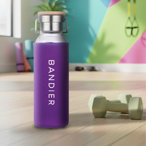 Hydrate with this 22 oz glass bottle with a protective, insulating, waterproof neoprene sleeve. The clear glass bottle has a screw-on stainless steel lid with a decorative bamboo top and a contoured stainless steel flip carry handle. Glass is recyclable and made from sustainably sourced materials. Fits most cup holders. BPA Free, Lead Free and FDA Compliant.