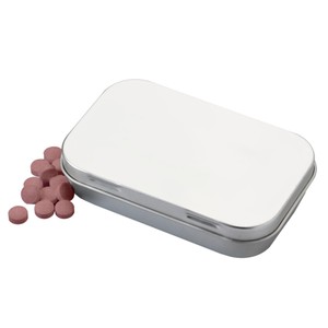 Live "large" during upcoming promotional events by featuring this fantastic marketing tool. Choose this Large Rectangular Hinged Mint Tin as a handy giveaway during tradeshows, conferences and fundraisers. Add your company's logo to this 3 3/4" x 2 3/8" x 3/4" product for an excellent opportunity to promote your business. The mints are sugar free and gluten free. Enhance your next promotion by ordering this product today.