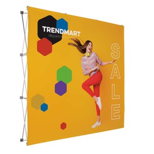 This pop-up display transforms from a compact unit to an impressive backdrop in minutes. Your artwork will be dye sublimated on polyester knit fabric. Graphic panel covers the front of the frame only. Hook-and-loop fasteners make graphic panel installation simple. Aluminum frame with nylon plastic hubs. Carry case included. Two-year warranty on hardware.