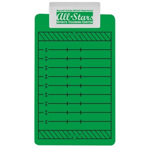 Designed to hold standard legal-size pads and documents, this versatile sport clipboard features an extra-large 5.5" clip that can be a different color than the board. Coaches and team managers will love the variety of available backgrounds and the optional dry-erase clear coat that transform the clipboard into a reusable playbook for drawing up plays on the fly. A convenient hang hole makes storage simple, so it’s always ready for the next big game.