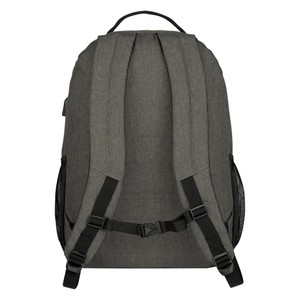 Made Of 300D Polyester. Adjustable Padded Shoulder Straps With Storage Loops And Carrying Handle. Large Front Double Zippered Compartment With Inside Pocket And Multiple Accessories Compartments. 2 Front Zippered Pockets With Storage Loops. 2 Side Mesh Pockets. Features 37" USB Cord Inside With Outside Charging Port For Easy Charging Access. Adjustable Sternum Strap For Secure Fit. Double Zippered Main Compartment With Laptop Pocket And Padded Back. Power Bank Not Included. Accommodates Most Tablets And Laptops Up To 15". Spot Clean/Air Dry.