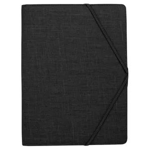 This padfolio has your organizational needs covered with a document pocket, business card slots, and a USB holder. Its two-toned polyester cover and patterned elastic strap closure make it look good, too!