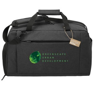 The AFT Recycled 21" Duffel is ready to travel with you whether it's on vacation, to the gym, or office. This duffel features a roomy zippered main compartment for all your essentials. Get extra storage with the side zippered shoe compartment, two zippered front pockets, and side water bottle pocket. Carry with ease with the adjustable, removeable shoulder strap, and the padded grab handle. This duffel is made from recycled water bottles. Through a partnership with 1% For The Planet, one percent of sales of this and all EcoSmart products will be donated to nonprofits dedicated to protecting the planet.