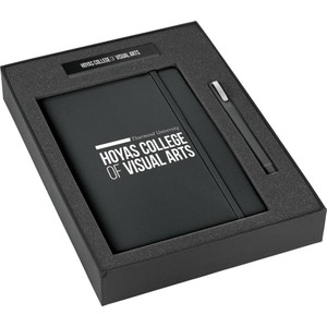Optimize your message with this Ambassador Power Gift Set. Set includes (1921-09) Ambassador Bound JournalBook™, (6620-31) Ambassador Square Pen, (7120-15) Jolt 2,220 mAh Power Bank and the (9094-06) 2 Pc Bundle Gift Box. Pricing includes a one color / one location imprint on each item. Decoration on gift box is available for an additional charge. Available on SureShip!