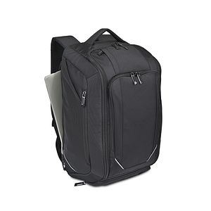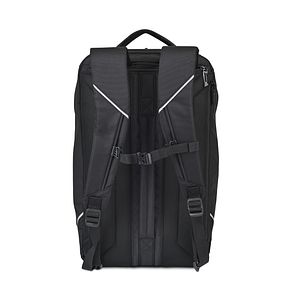 Go from work to weekend with the Zoom Turbo Convertible Backpack. Use it as a backpack or duffel with a quick switch. Features include a U-shaped opening, padded laptop (16”) and tablet (10”) sleeves, mesh pockets, water bottle holders, and a shoe tunnel. Tuckaway straps, trolley strap, and padded handle add travel ease. PVC-free design keeps gear organized and protected.