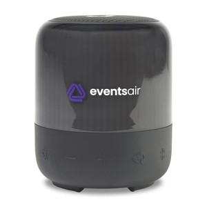 Portable speaker features an 8W speaker with a single passive radiator to provide 360-degree dynamic sound in a compact package. The 360-degree light show synchronizes with the music to take any party to the next level. Light can also be turn off. Gift box dimensions: 3.15"L x 4.17"H x 3.15"W.