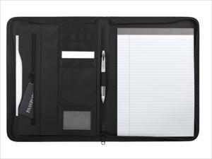 This sturdy vinyl padfolio has a textured finish and stitched details to give it a premium look. The interior organizer has lots of options for keeping your business essentials together, and you can zip the whole thing shut to keep everything secure as you rush off to your next appointment.
