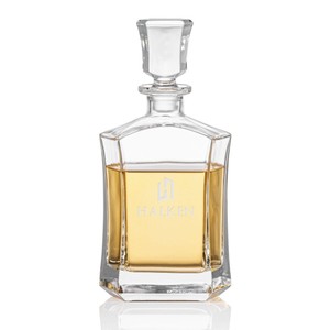 The bold and striking Avalon Decanter features a curvy twist on the classic squared whiskey decanter with a waisted body and flared lid. Made from lead-free Crystalline and the large 25oz capacity fits your favorite standard whiskey, bourbon, or rye bottle. Packaged in a satin-lined presentation gift box for an exquisite and opulent executive gift.