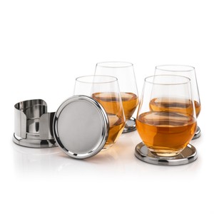 The Baldoni Coasters & On-the-Rocks Set combines modern elegance with everyday functionality. Featuring your choice of 2 or 4 crystal-clear on-the-rocks glasses paired with sleek stainless steel coasters, this set offers a perfect balance of style and durability. Ideal for entertaining or corporate gifting, it delivers a polished, professional look that enhances any home bar or executive setting. Various other glass styles are available.