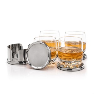 The Baldoni Coasters & On-the-Rocks Set combines modern elegance with everyday functionality. Featuring your choice of 2 or 4 crystal-clear on-the-rocks glasses paired with sleek stainless steel coasters, this set offers a perfect balance of style and durability. Ideal for entertaining or corporate gifting, it delivers a polished, professional look that enhances any home bar or executive setting. Various other glass styles are available.
