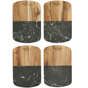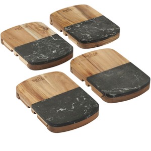 Crafted from a chic combination of striking black marble and natural acacia wood, this trendy cheese cutting board set makes a tasteful addition to any kitchen or dining room. The included cheese knives easily store inside the built-in drawer located under the cutting board. Comes packaged in a FSC®-certified premium gift box. Please note that due to the nature of the material there may be variations in the marble pattern and laser engraving of the Black Marble Cheese Board Set with Knives.