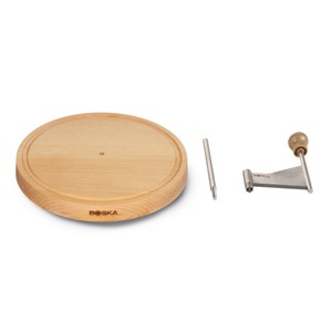 - Made of oiled beechwood with a stainless steel blade, featuring five short pins for a secure grip.