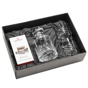 Your choice of Lead-Free Crystalline Decanter is paired with 2 matching glasses and a set of 2 Swiss Force stainless steel balls to keep your drink chilled in a classy way. Packaged in a beautiful satin-lined presentation box, this set creates an unmatched experience for the discerning connoisseur.