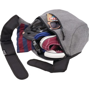 The Brooklyn Deluxe Sling Backpack has a large zippered main compartment with a zippered front pocket to hold your essentials. It also has a padded back and an adjustable, padded sling shoulder strap. Disclaimer: There may be minor variations in color of the actual product due to the nature of the fabric dyes, weaves and printing.