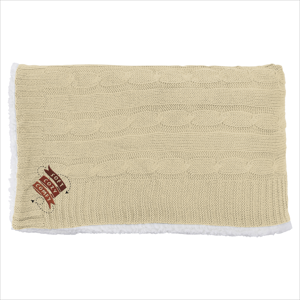 The Cable Knit Sherpa Blanket features a classic cable knit design with a cozy sherpa backside and comes folded in a vinyl bag.