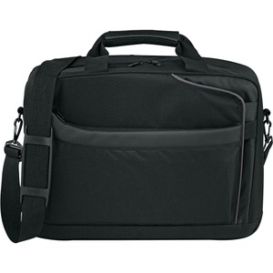 Laptop-only section unfolds lying flat on X-ray belt, expediting airport security. Holds most 15" laptops. Front compartment contains organization and file dividers. Front zippered pocket. Rear compartment with built-in laptop sleeve. Quick-access corner pocket. Rear trolley handle. Removable, adjustable shoulder strap. Two carry handles. Disclaimer: There may be minor variations in color of the actual product due to the nature of the fabric dyes, weaves and printing.