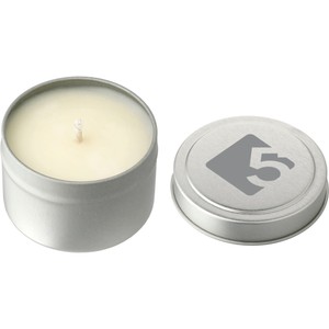 The Coastal Waves 2.7 oz Mini Tin Candle is made with food-grade soy wax and has a burn time of 23 hours. It is both phthalate- and lead-free with a single cotton wick. The scent includes golden lilies, tea-like coral, cloud-like mush with a soft mossy finish.
