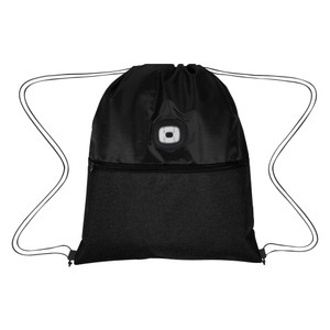 Made Of 300D Polyester. Extra Bright COB Light. Two Light Settings – White On/Off And Red Flashing. Push Button To Turn Light On/Off And Change Settings. Drawstring Closure. Zippered Front Pocket. Spot Clean/Air Dry.