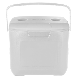 Coleman® 30 qt. Chest Cooler with a hinged lid, two built-in beverage holders, a large grip comfortable handle, and holds 38 cans.