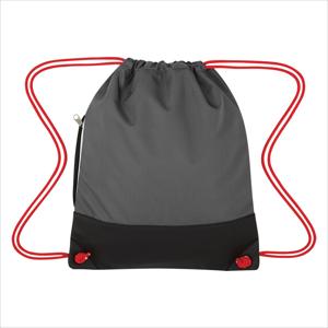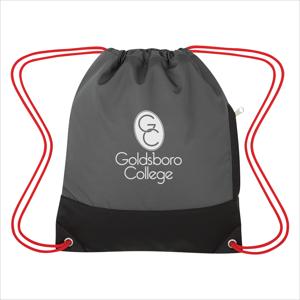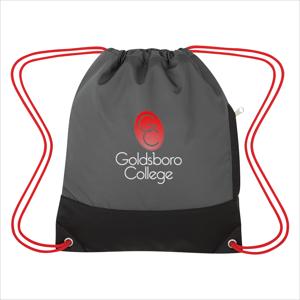 Made Of 900D Nylon With Simulated Leather Trim. Side Zippered Pocket. Reinforced Eyelets. Matching Drawstring And Colored Trim. Drawstring Closure. Spot Clean/Air Dry.