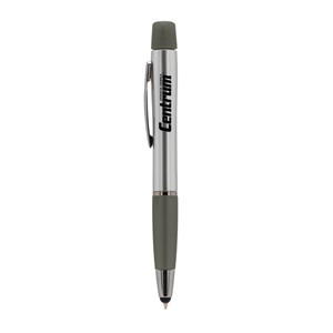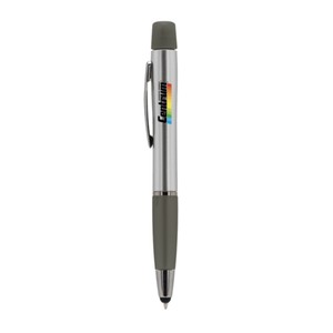 Isn’t she lovely? Isn’t she wonderful? Yes and yes! Meet the Curvaceous Trio Color Highlighter Pen. This pen has it all: a stylus tip that writes black ballpoint, a silver sprayed barrel, and a highlighter top. Highlighter colors include blue, pink, and yellow. Proudly display her on your desk and get a few for your customers while you’re at it.