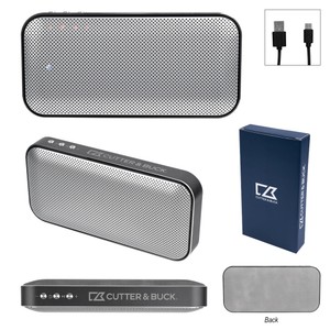 Wireless Speaker Featuring High Definition Bluetooth® 5.3 Technology And Built-In Power Bank. Simply Pair With Your Device To Enjoy Dynamic Stereo Sound Or Receive Hands-Free Calls. Supports TWS (True Sound Wireless) And Ambient Harmonics Technology. Low Temperature Smart Performance Engine . Overvoltage, Undervoltage And Short Circuit Protection. Features A Type-C Input (Cord Included). 5,000 mAh Lithium Polymer Battery. Output: 20W. Pairs From Up To 32 Feet Away. Up To 12 Hours Of Play Time . Charging Time Approximately 2 Hours. Perfect For Your Home, Office Or Outdoor Activities. Features Signature Cutter & Buck® Logo. The Bluetooth® word mark and logos are registered trademarks owned by the Bluetooth SIG, Inc. and any use of such marks by Hit Promotional Products, Inc. is under license. Other trademarks and trade names are those of their respective owners.