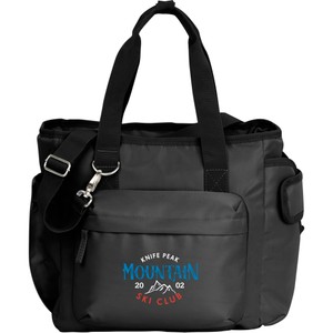 The Daybreak 16 Can Cooler features a unique exterior pocket designed to fit all drinkware, including 40oz travel tumblers with handles! Simply slide your favorite travel tumbler into the side pocket and secure it in place with the built-in hook-and-loop strap. The zip-top opening allows easy access to the items inside while the zippered front pocket provides additional storage. The adjustable crossbody strap is easily removed when not in use and the sturdy carry handles snap together for comfortable carrying.
