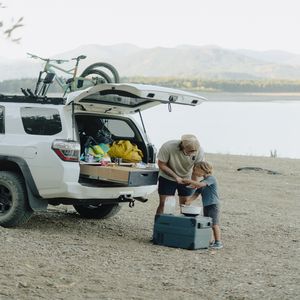 Take your fridge on the road with this 28L Dometic electric cooler. It chills or freezes from minus 7 to 68 degrees, plugs into AC or DC power, and holds up to 36 cans with organized storage.