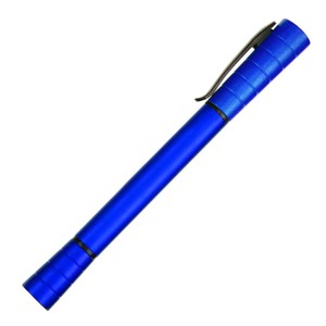 Plastic ballpoint pen and highlighter combo. Pen balances itself on both ends.