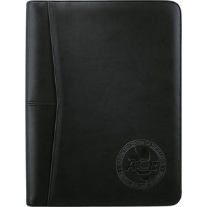 The Pedova™ Writing Pad with FSC® Mix Paper features seven business card holders, two USB flash drive holders, one gusseted document pocket, one gusseted elastic media pocket, and a mesh ID display window. It also has a convenient pen loop to hold your stylus or writing instrument. This item includes one 11" H x 8.5" W FSC® Mix writing pad, with refills available to order separately (9091-01RF).