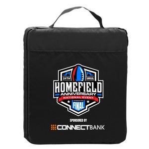Cheer on your team in comfort with this 1.5" thick polyester fabric stadium cushion. It features a convenient front program pocket for quick storage and a built-in handle for easy carrying. It’s a must-have for sporting events, concerts, or outdoor activities.