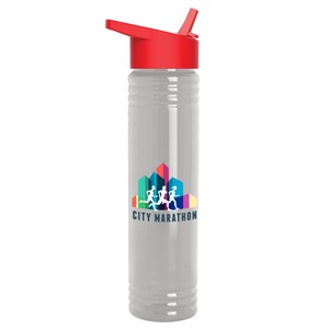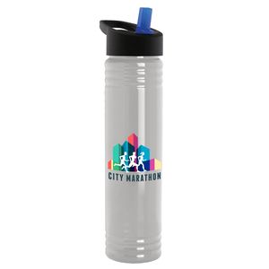 Make every sip count with this 32 oz. Tritan® Renew bottle. Its tall, slim silhouette and extra-large opening make it easy to add ice and clean, while the flip-straw lid with molded carry loop adds on-the-go convenience. Built with rigid wall construction for long-lasting durability, this bottle stands up to every workout, game, or outdoor adventure. Mix and match bottle and lid colors to create a look that’s all your own. An optional Motivational Measurement imprint on the second side makes it easy to track your daily water intake, available at no extra charge when the screen print ink color is the same color as your side-one imprint. Bottle is molded from Tritan® Renew, which contains up to 50% post-consumer recycled polyester based on mass balance calculations.