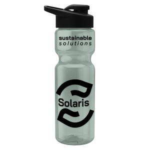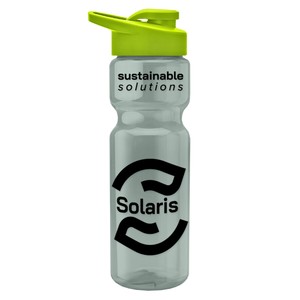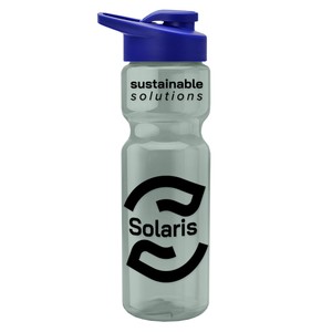 This classic 28 oz. sport bottle features a flip-top, drink-through lid with molded carry loop for easy transport and a contoured design for a secure grip. It fits standard bike cages and most cup holders, making it the perfect companion for workouts, commutes, or weekend adventures. With mix-and-match bottle and lid color options, it’s easy to create a standout piece for any promotion. 98% of total product made from post-consumer recycled PET.