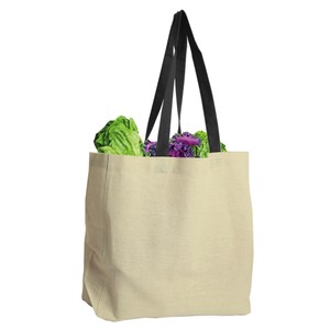 Carry your essentials with ease in this durable 100% cotton canvas tote. It features sturdy 23" colored handles that add a pop of style while providing comfortable over-the-shoulder carrying. Perfect for everyday use, events, or giveaways, this tote combines practicality with a classic look.