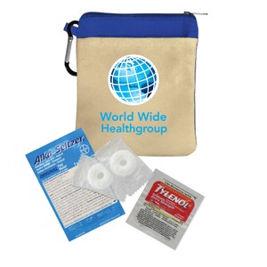 Keep essentials close at hand with this compact 100% cotton canvas pouch designed as a handy recovery kit for late nights. Featuring a colorful accent band, secure zippered closure, and an attached carabiner, it’s perfect for clipping to bags or backpacks. Inside, you’ll find must-have items like Tylenol® pain reliever, Alka-Seltzer® antacid, Purell® hand sanitizer, breath mints, antiseptic towelettes, and more for quick relief and care.