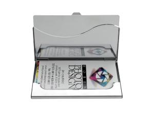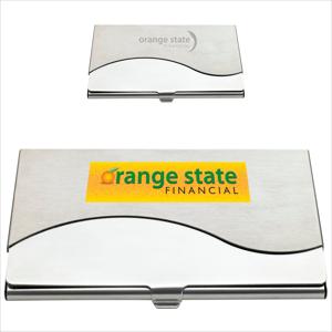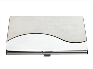 Keep your business cards neat and at your fingertips with this attractive metal case that features a wave design.