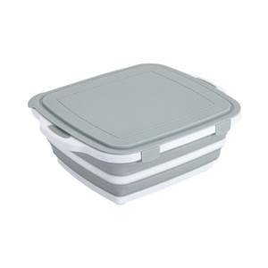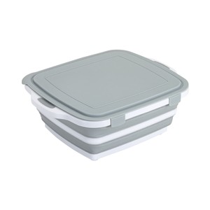 Chop, wash, and prep like a pro with the Grub Box Collapsible Food Prep Tub! Built to multitask just like you do. This clever kitchen essential works as a cutting board, washing basket, and marinating tub all in one compact design. Non-slip legs keep it steady while you slice and dice, and the easy-grip handles make moving it from sink to counter simple. Best of all, it collapses flat when you're done, saving serious space in drawers, cabinets, or on-the-go setups. Perfect for home cooks, campers, and culinary giveaways, the Grub Box makes meal prep smarter, not harder.
