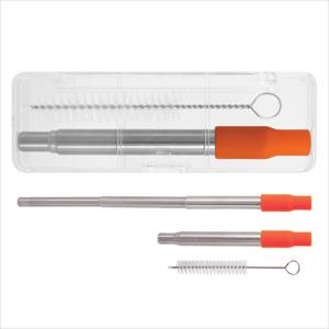 - 8 ½" Stainless Steel Straw, Silicone Tip And 3 ¾" Wire Cleaning Brush.