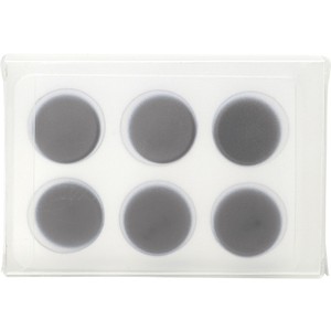 Magnet set includes 6 magnets packed in a drawer with a sliding PVC tray.