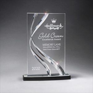 Made of Lucite Acrylic. Sweeping Ribbon Design. Made In USA. Ships Unassembled. Must Request Assembled Award on PO.