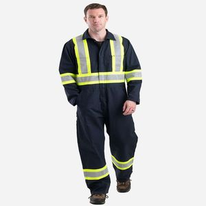 7.5 oz./yd², 55/45 cotton/ polyester twill;Two-way brass zipper with locking slider holds up to tough tasks;Two chest pockets, two front pockets with side openings;Double tool pockets and two reinforced back pockets store plenty of tools;2†reflective tape and X-back design help to increase visibility;