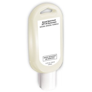 Satisfy ingredient-conscious consumers with effective and safe sun protection. Our Mineral SPF 30 Broad Spectrum Sunscreen in 1.5 fl. oz. tottle is made with 100% zinc oxide as SPF protection, but also includes skin-friendly organic ingredients such as beeswax and coconut oil. It has been tested to protect against UVA and UVB rays and is water resistant for 80 minutes. Also available with a convenient carabiner. **Product is Made in the USA with responsibly sourced, global ingredients.**