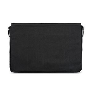 A commuter sleeve designed to keep your mobile office up and running. Top flap with hook and loop fasteners. Easy access to interior compartments when flap is open. Interior front slash pocket perfect for storing papers or file folders. Side zippers unzip all the way to easily access all that is inside. Padded laptop compartment sized to fit up to a 15” laptop.