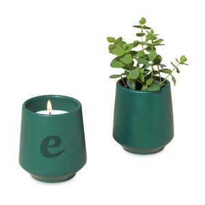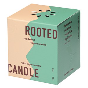 - A 6oz soy-blend scented candle is outfitted in a matte glazed ceramic vessel and includes an organic seed packet to grow plant once the candle has been burned down